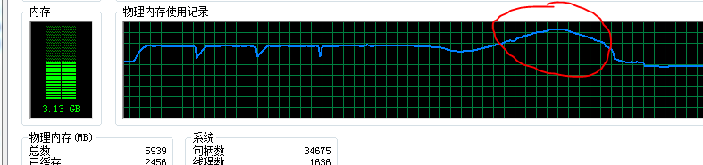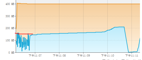 上图中红圈中为‘FileChannel’方式下的物理内存使用情况。
