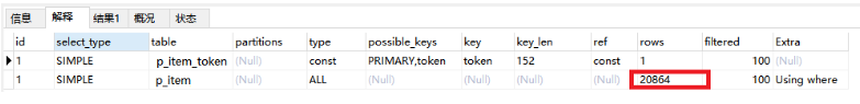 注意看上面大红框。p_item表中是2w条数据,那这个是全表扫描了。