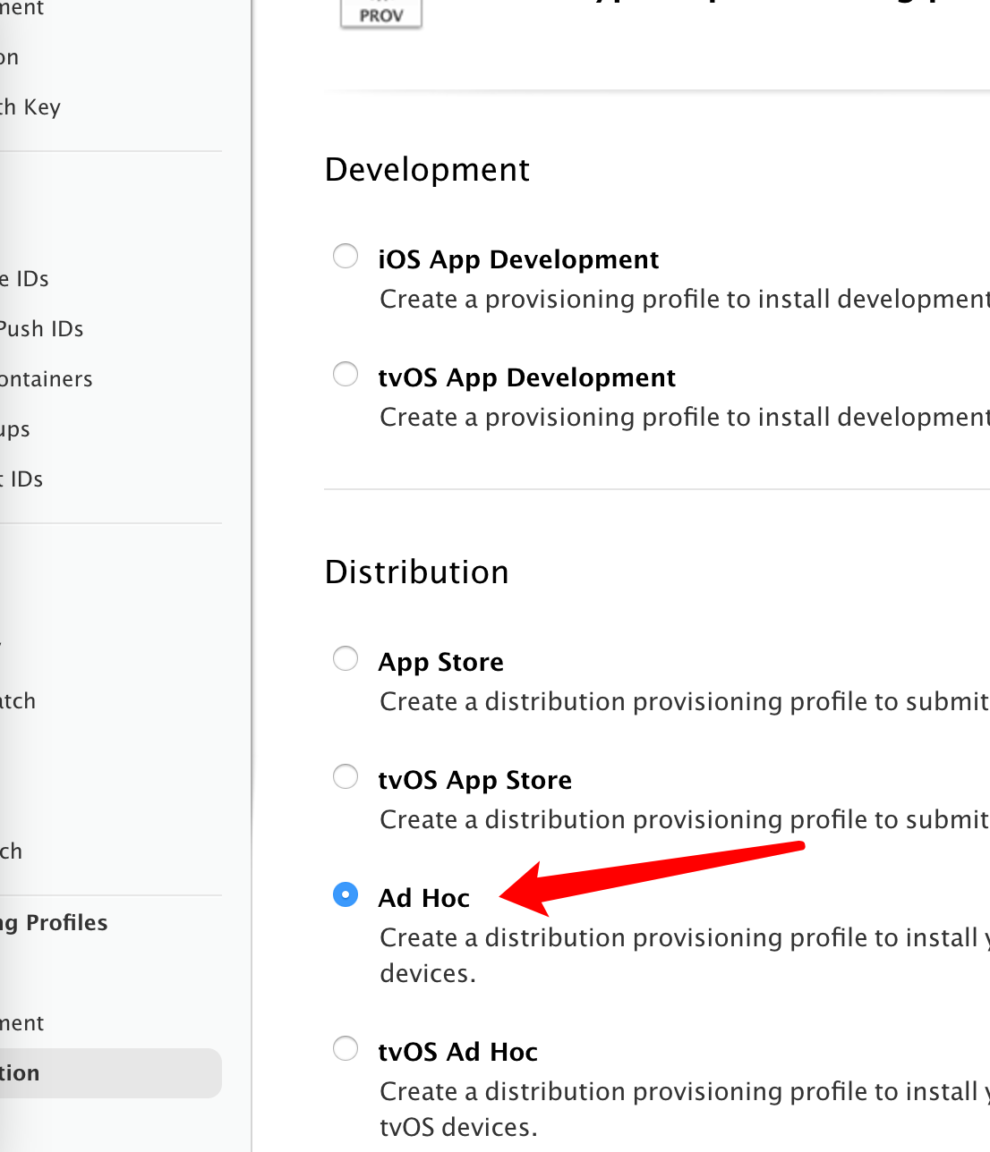 打开Apple的开发者网站,登录个人账号,进入“Provisioning Profiles”,选择 Distribution ,然后添加新的描述证书