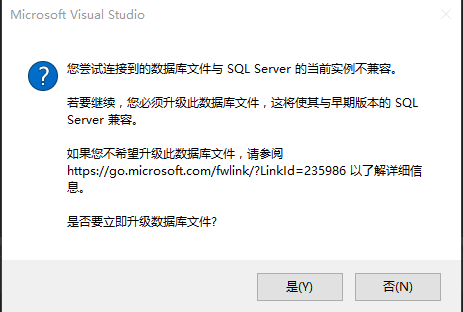 问题一:VS2017使用老版本mdf数据文件不能正确导入