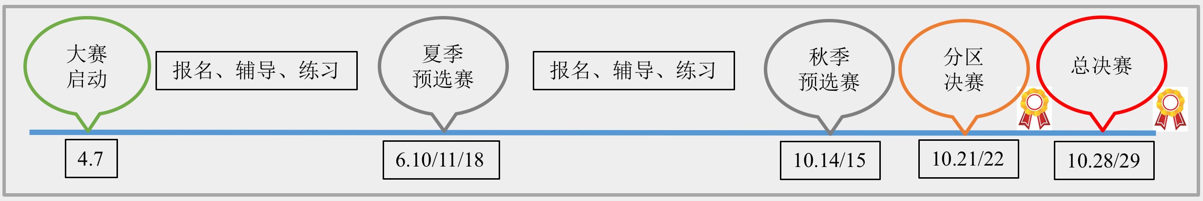 安排夏季(6月)和秋季(10月)两次预选赛,分两批次确定区决赛人选。夏季预选赛未入选分区决赛的选手可以再次参加秋季预选赛。报名截止为预选赛开赛前。