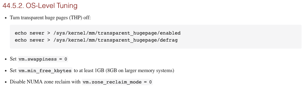 来说正题,操作系统这个话题其实很早想拿出来和大家分享,拖到现在一方面是因为对其中各种理论理解并不十分透彻,怕讲不好;另一方面是这个问题好像一直以来都很少有人关注,这里算是给这个话题开个头。其实这几个参数前前后后看过好些次,但却一直没有吃透,前段时间趁着休假又把这些理论翻出来过了一遍,有了进一步的理解,这里权当整理梳理。下图是HBase官方文档上对操作系统环境的几点配置要求: