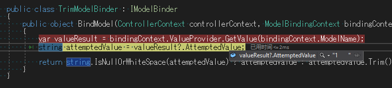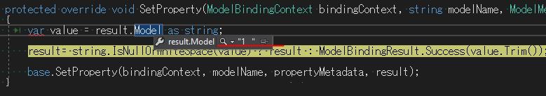 result= string.IsNullOrWhiteSpace(value) ? result : ModelBindingResult.Success(value.Trim());
