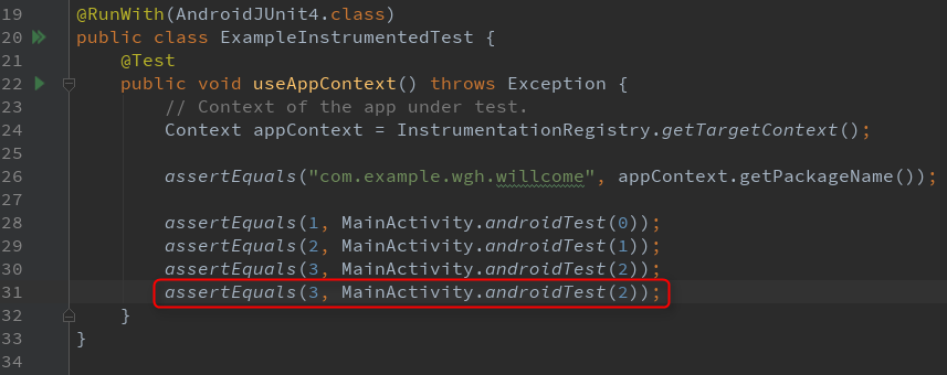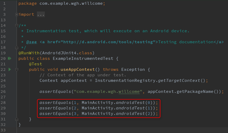 修改 androidTest() 中的代码,如下所示: