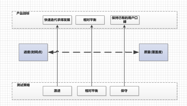 作为测试工程师的小明,心中只有质量二字,大熊也是这么教导和要求小明的。所以他不论大小项目,谨慎再谨慎,生怕上线后产品出现质量问题影响用户口碑。然而保证产品质量的目标是希望产品成功,在不同的产品目标情况下,应该选择与之对应的测试策略(如下图)。