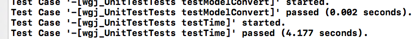 打印台会打印各测试方法的耗时,直接使用单元测试来获取某段代码的执行时间要比使用instrument快的多(instrument定位更精确)。通过性能测试直观的获取执行时间后,我们可以根据需要来决定是否将这些代码放到子线程中执行来优化代码(很多时候,数据转换会占用大量的CPU计算资源)