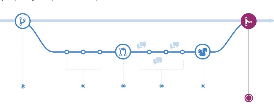 如图,githubflow非常简单,只有一个固定的远程分支marter。每个研发人员fork项目后,在本地用功能分支开发,开发完成后提交PR请求合并master分支。