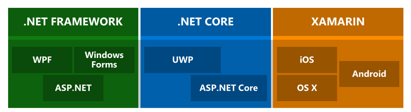 当前.net的运行时主要有.Net Framework, Mono for Xamarin和.Net Core 。这些运行时在不同是时期主要是为了解决当时所面临的问题衍生而出,这里介绍下他们相互的关联和职责。