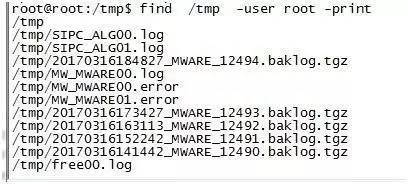 例3.在tmp目录下查找用户为root创建的文件并输出;
