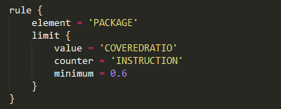如果没有被单元测试覆盖到的指令比率高于 60%,那么构建将会失败: