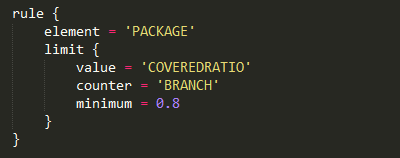 如果代码分支(if,switches 等)有多达 80% 以上没有被单元测试覆盖到,那么构建将会失败: