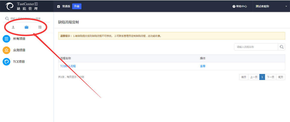 1. 用户登录TCE进入项目列表,项目包含众测项目及TCE项目(查看名词解释项目类型)。