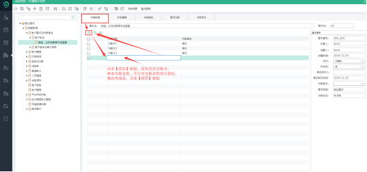 【添加】按钮,添加一个空功能点;单击功能名称,修改编辑功能点名称,单击功能描述,对功能点信息进行修改编辑;点击【保存】按钮,保存修改信息。