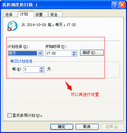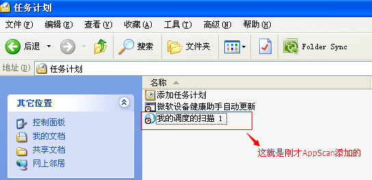 3、Appscan只提供了打开“控制面板”中的“计划任务”。我们可以利用windows的计划任务进行调整。