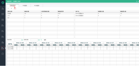 3) 显示模块下缺陷总数、已修复缺陷总数和缺陷修复率,用户用例执行数和缺陷提交数,用户每天的用例执行数和缺陷提交数。