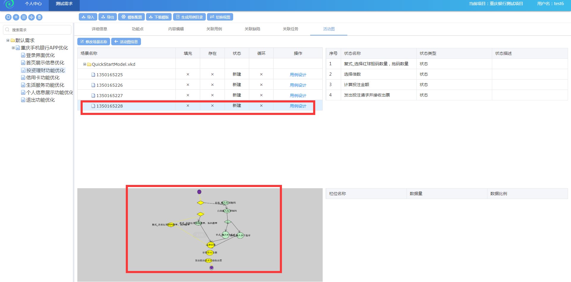 在测试需求内上传流程图,系统自动解析出不同的测试场景;