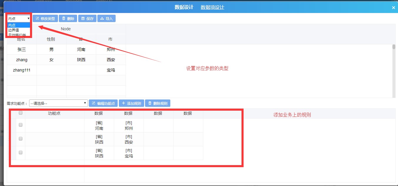 点击场景设计,进入数据设计界面,接下来可根据输入限制,输入参数等进行设置边界值,内点,无效等价类,添加对应业务规则;