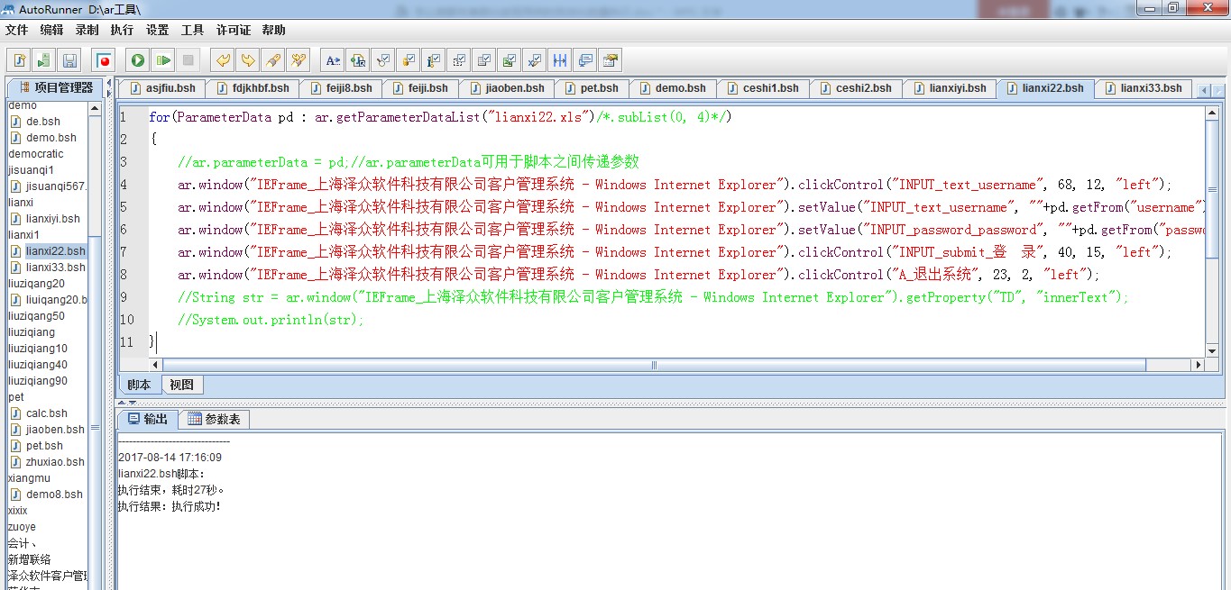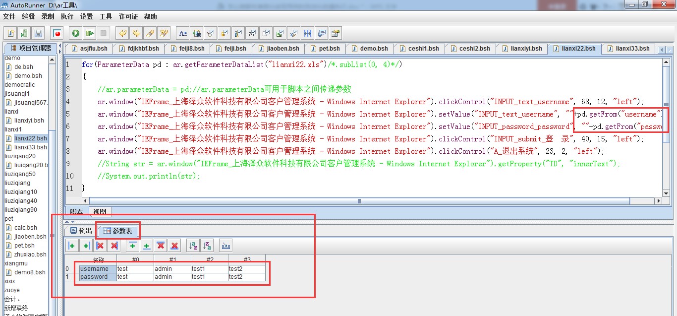 自动化测试的核心和灵魂就是用例的批量自动化执行,那么对于自动化自行过程中的执行记录,我们也要记录下来,这个时候我们就需要对我们的测试脚本进行参数化,和场景的编辑: