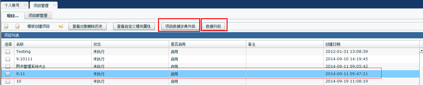 解答:出现这种情况是因为创建的用户在创建项目的后面,进行项目树数据字典升级和数据升级就可以了,具体步骤如下:第一步,进入到后台点击项目管理;第二步,选中该项目,例如:9.11这个项目,然后点击项目数据字典升级、数据升级。