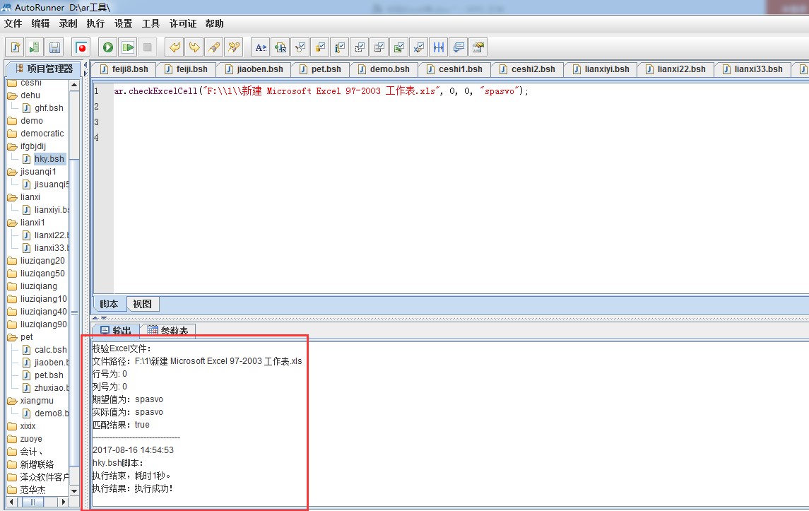 命令举例:ar.checkExcelCell("C:Test.xls", 0, 0, "Spasvo");