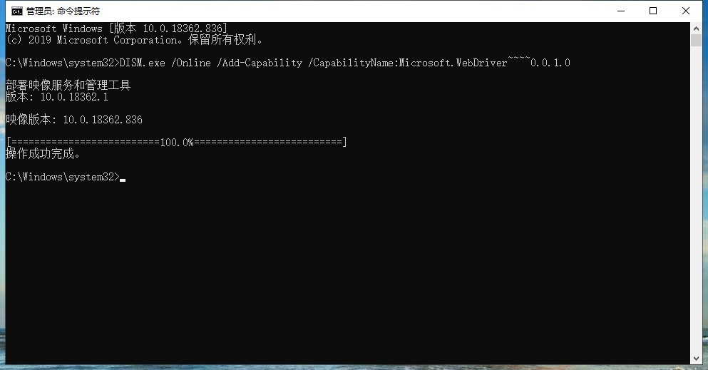 第一步,与火狐浏览器不同,Edge浏览器需要先使用管理员身份执行“DISM.exe /Online /Add-Capability /CapabilityName:Microsoft.WebDriver