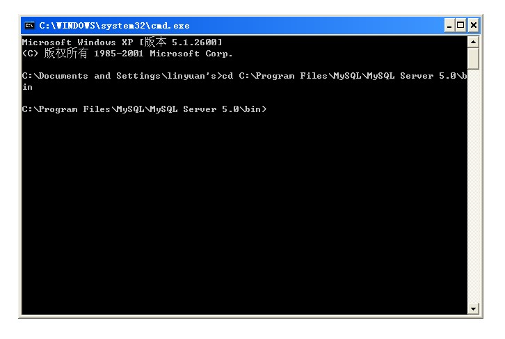 进入Mysql的bin目录,在cmd中输入cd C:Program FilesMySQLMySQL Server 5.0in(C:Program FilesMySQLMySQL Server 5.0in只是一个举例,用户需要根据自己的实际安装目录输入)。