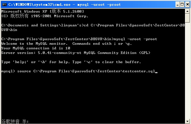 进入mysql后就可以导入TestCenter数据库文件testcenter.sql 了,输source C:Program FilesSpasvoSoftTestCenter estcenter.sql