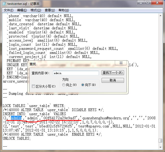 解答:如果是刚装上,管理员账号里面没什么重要的数据,可以直接卸载后重装。 如果不想重装就只能到数据库里面修改密码了,但是数据库中密码是加密的,只能去替换密文,方法如下: 第一步:找到TC安装目录C:Program FilesSpasvoTestCenter下的testcenter.sql文件。 第二步:右键点击testcenter.sql进行编辑,打开testcenter.sql文件,搜索关键字admin。