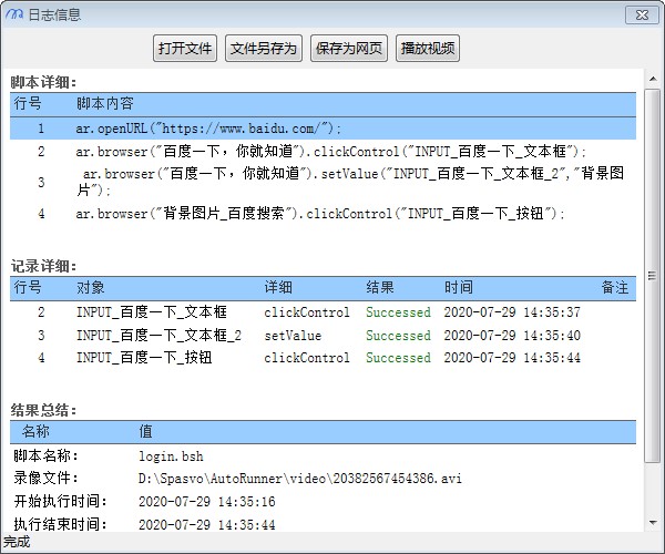 日志信息里显示了执行脚本的详细信息,包括脚本内容,执行结果,执行时间等等。