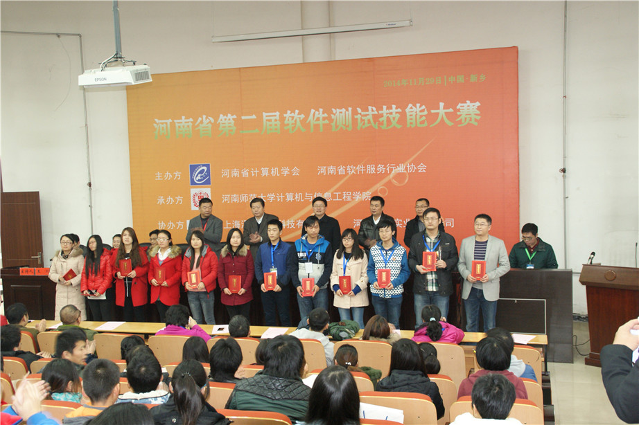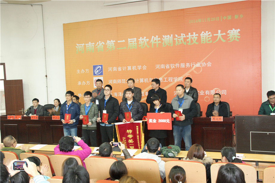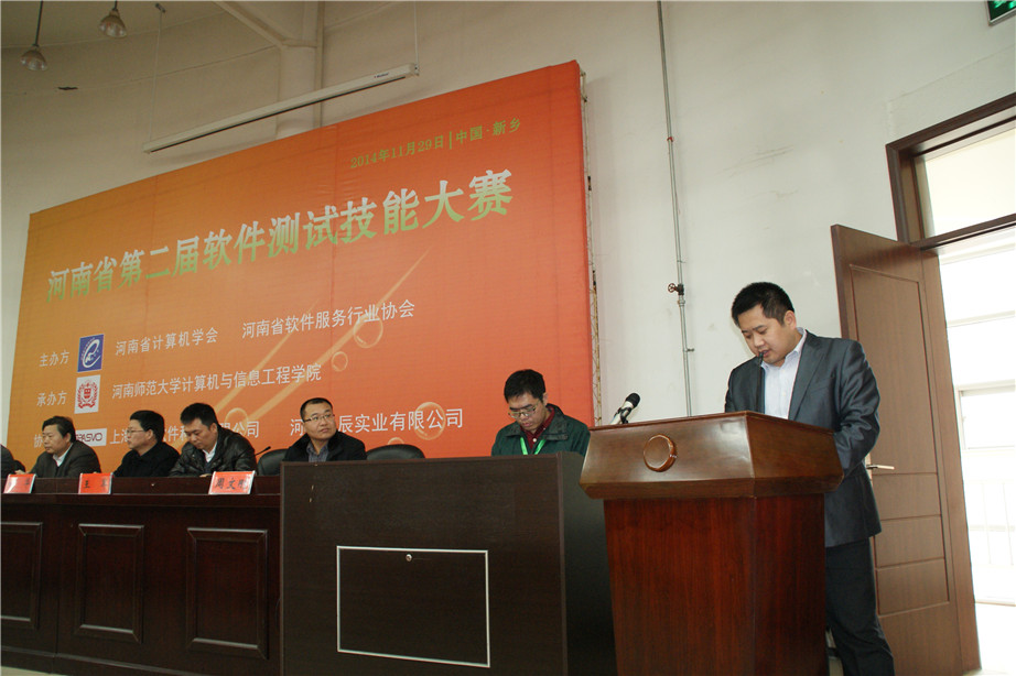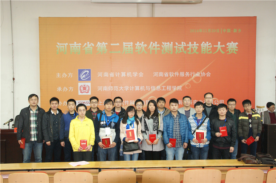 由河南省计算机学会和软件服务业协会主办、河南师范大学计算机与信息工程学院承办,上海泽众软件科技有限公司和河南达辰实业有限公司协办的“河南省第二届软件测试技能大赛”,于2014年11月28日——11月30日在郑州大学信息工程学院举办,共有15个单位35个队参赛。