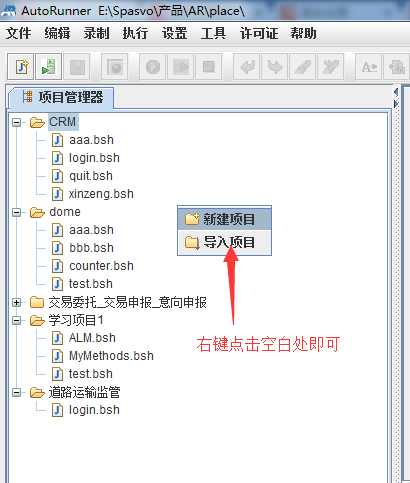 注:如需导入项目和导入脚本,则需要我们把待导入的内容先存到AR的工作空间路径下,例如:我的工作空间是:C:\Users\Administrator\Documents\