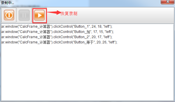 另外,在录制的过程中,我们也可以掌控录制脚本的进程,可以进行暂停录制、继续录制、结束录制等操作: