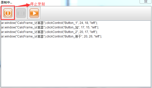 一切准备绪,接下来我们开始录制脚本,以录制计算器“1+2=3”算式为例