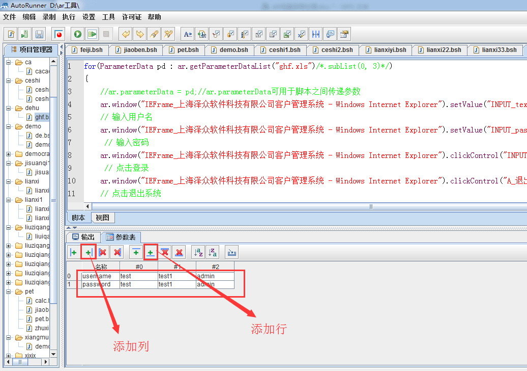 ar.window("IEFrame_上海泽众软件科技有限公司客户管理系统 - Windows Internet Explorer").setValue("INPUT_password_password",""+pd.getFrom(“password”)); //输入密码