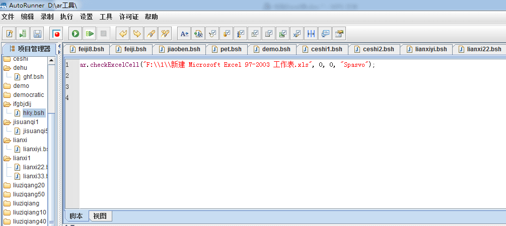 2、打开AR,在项目管理器中新建项目,双击项目,再新建脚本,双击脚本文件,在脚本编写框里我们把脚本编写好: