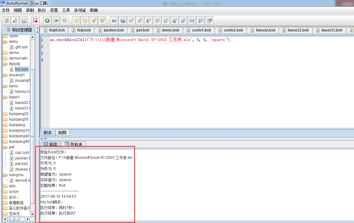 期望值与实际值相匹配,即执行成功,校验Excel表完成。