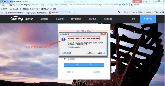 接下来,我们以提示“是否记住密码”的消息框为例,介绍一下如何校验消息框: