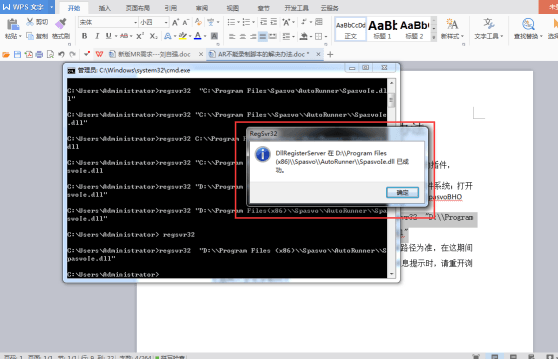 然后输入:regsvr32 "D:\\Program Files (x86)\\Spasvo\\AutoRunner\\SpasvoIe.dll"