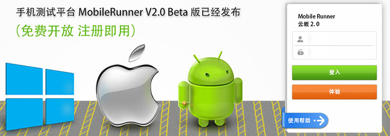 MobileRunner使用手册:点击文档下载 MobileRunner手机测试平台:http://112.65.167.18:8080/MobileRunnerCloudVersion/MobileRunnerCloudVersionClient.html 申请链接:http://www.spasvo.com/Register/Register.asp |