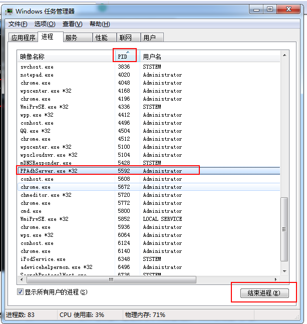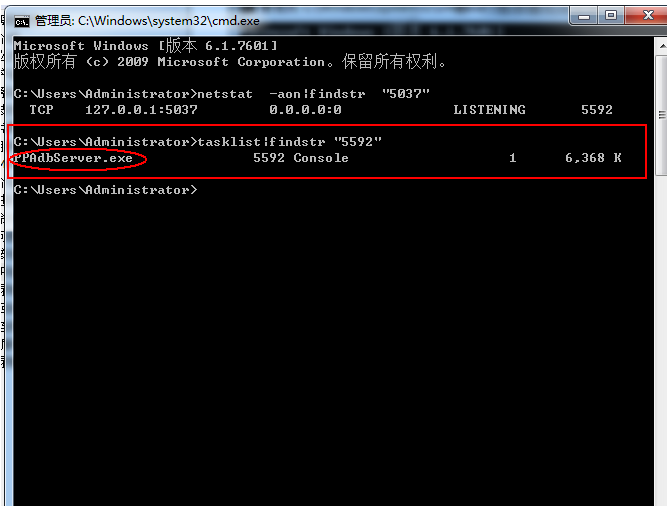 第四步:打开Windows的cmd,输入netstat -aon|findstr "5037"