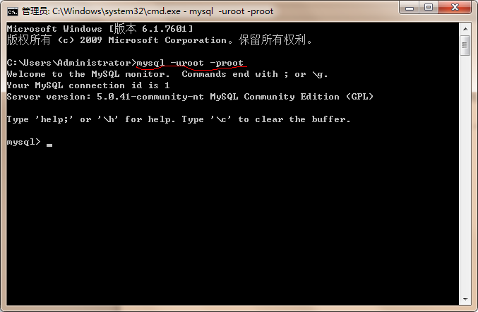 1 打开命令编辑框输入mysql –uroot -proot按回车,如图: