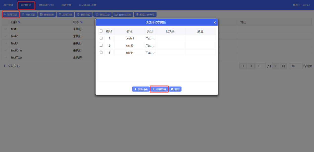 点击新增项目进行项目创建。前台的项目管理均以此为单位,所以要先创建项目。 |