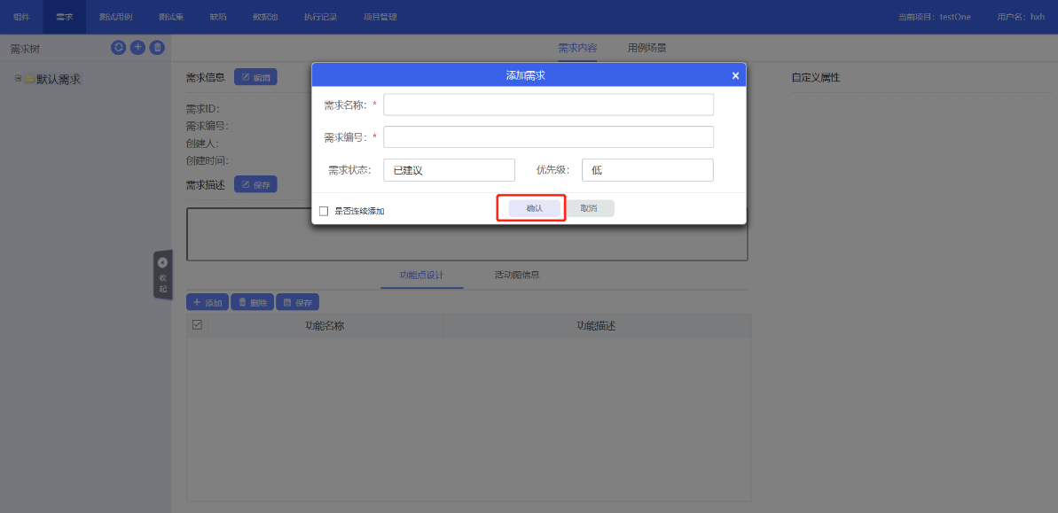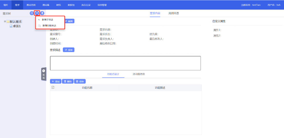 1.点击添加子需求 2.输入下列表格中相应栏位