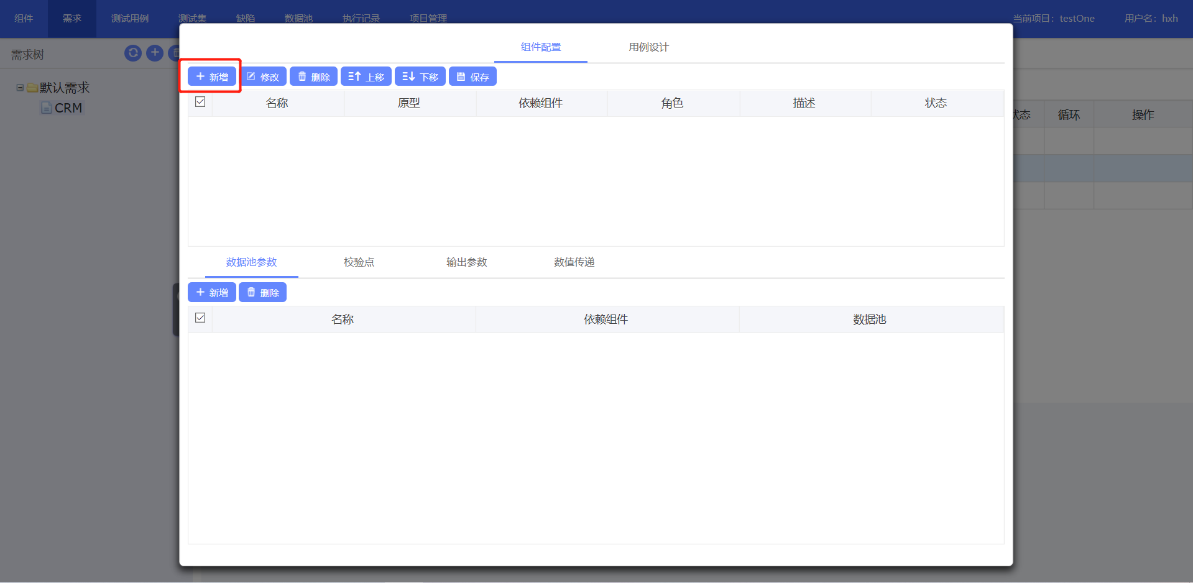 在用例场景界面新增一个手工场景后,双击手工场景后,进行场景绑定组件 |