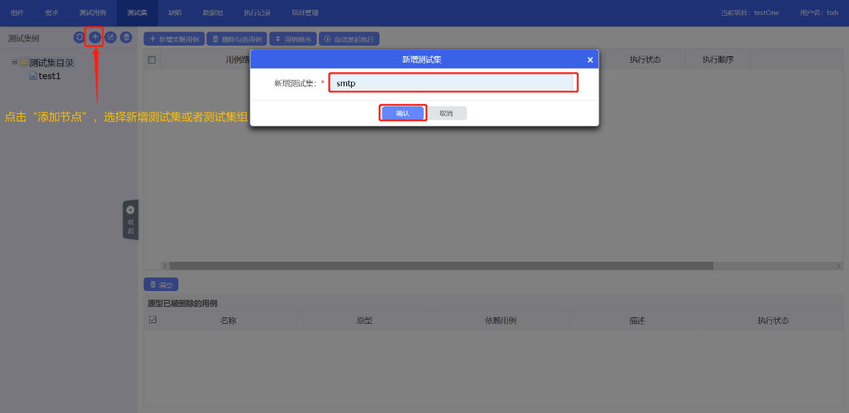 1. 点击新增测试集(组)输入下列表格相应栏位