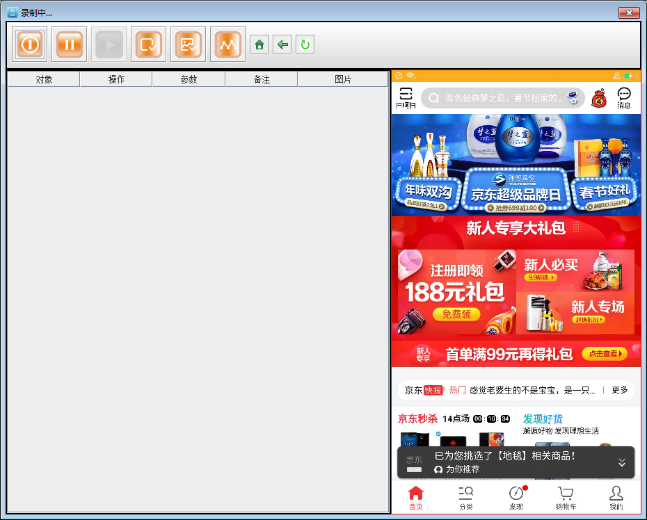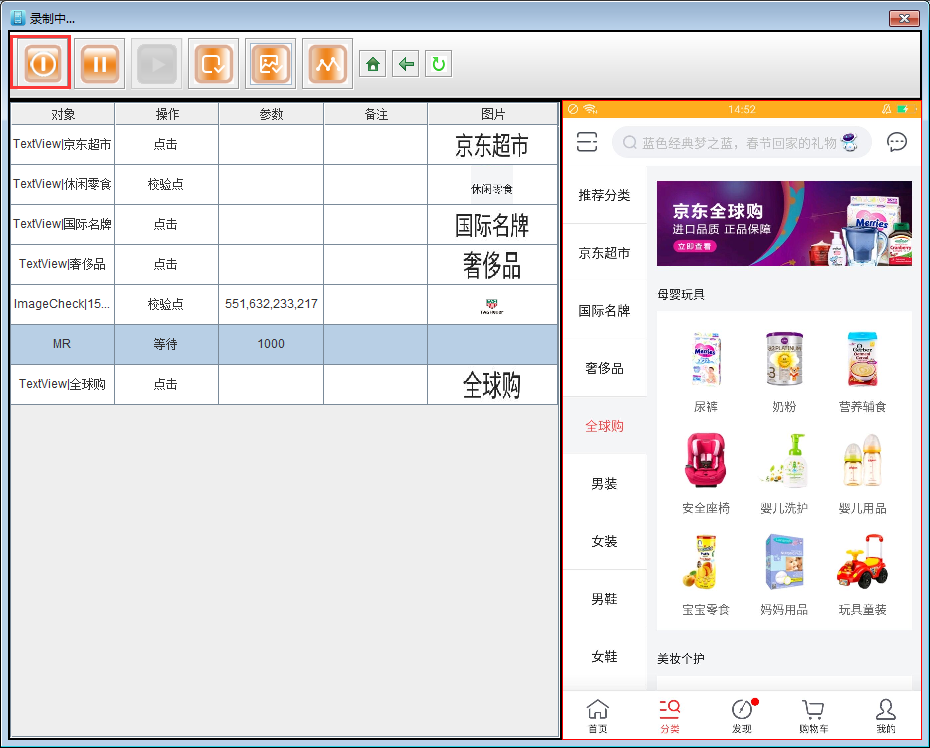 在录制界面,点击工具栏上的“停止录制”,生成脚本 |