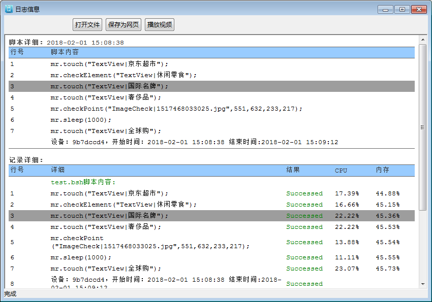 点击工具栏上的“开始执行”,开始回放脚本 |
