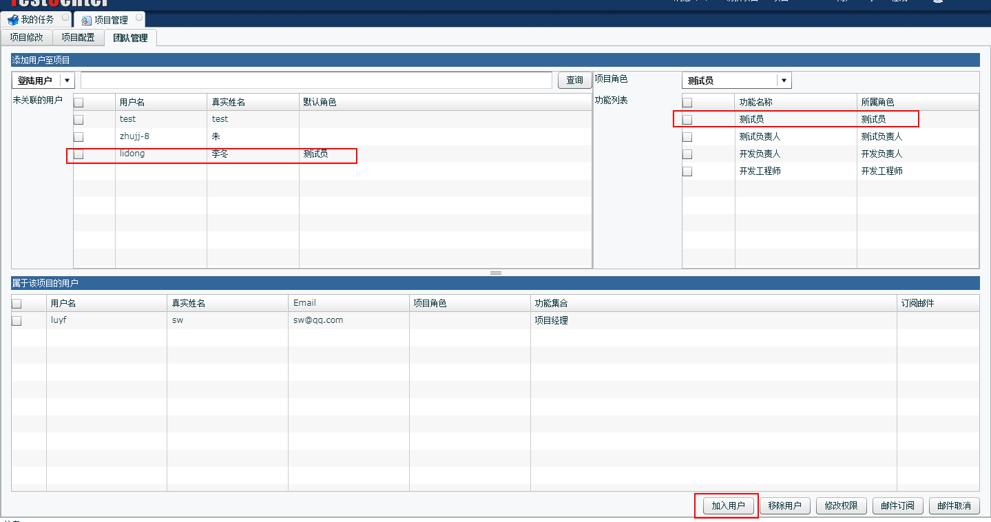 【TestCenter】-【系统设置】-【项目管理】-【团队管理】 |