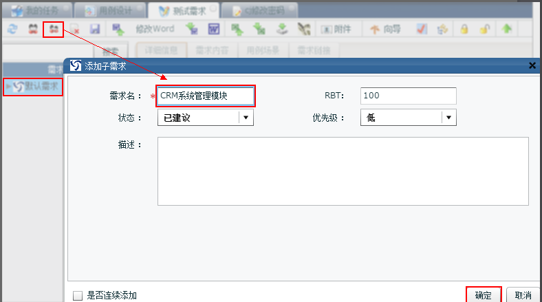 1. 点击添加子需求 2. 输入下列表格中相应栏位