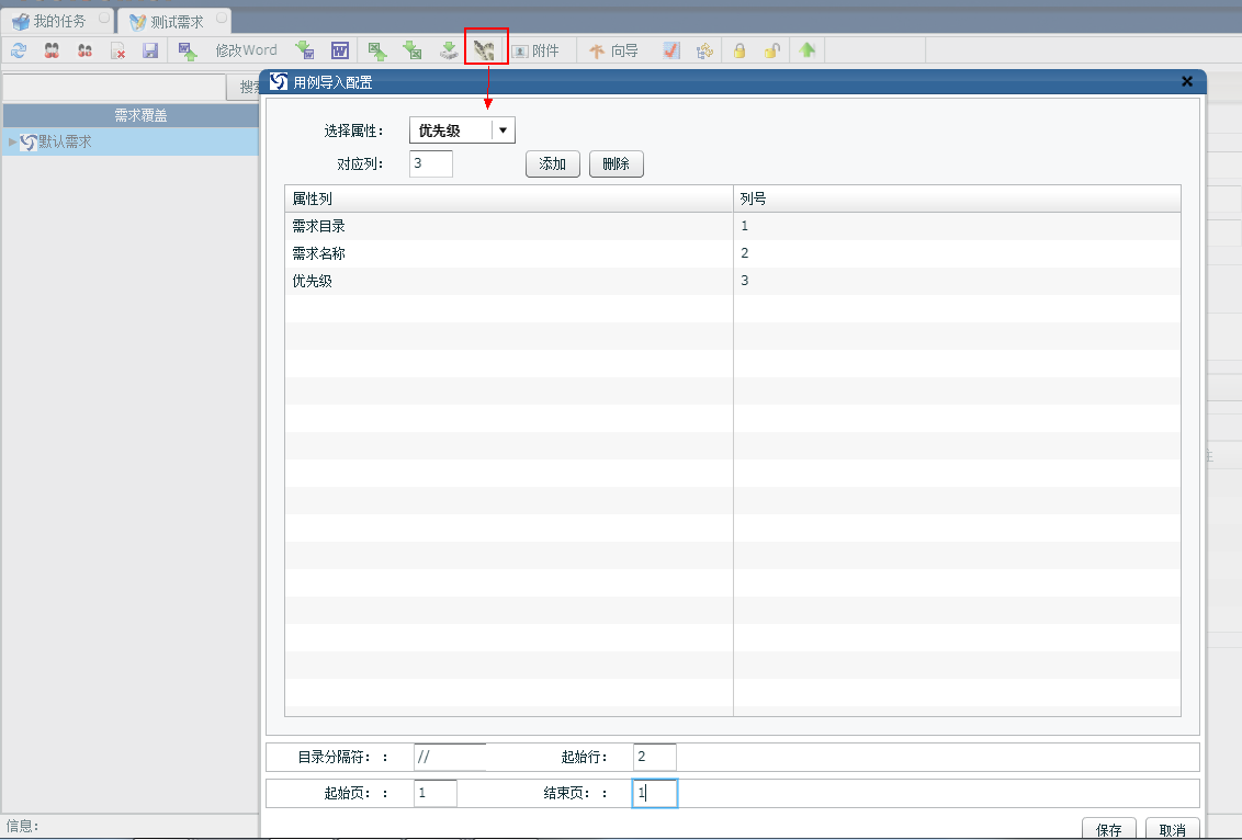 7. Excel文件配置成功后点击需求导入,提示导入成功,展开默认需求节点显示导入成功的需求信息 |